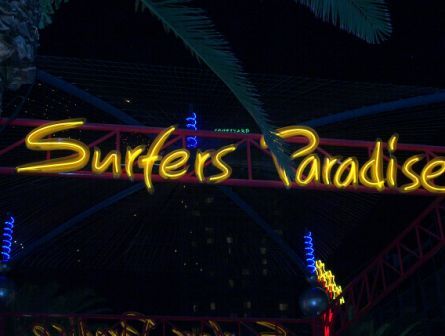 with Tom Cruise's bar in Cocktail) and the Surfers Paradise sign.